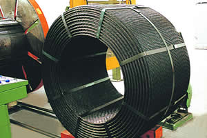 تستخدم كابلات الحديد لخرسانة مسبقة الإجهاد، كابلات حديدpc عموما في إنشاءات الخرسانة الضخمة مثل الطرق السريعة الكباري والمطاراتالمفاعلات النووية والسدود والكثير من الإستخدامات